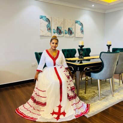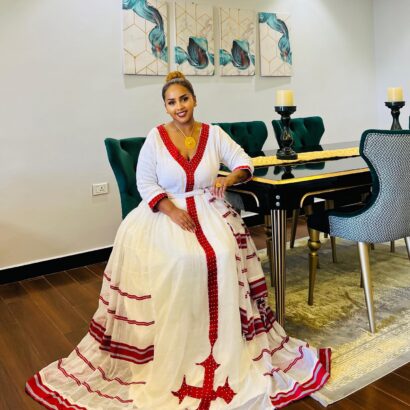This stunning Habsha kemis is a true a work art.elegance made from 100%cotton and hand -made woven fabric type,this dress is both comfortable and durable.Wether you are Eritrean,Ethiopian or simply appreciate Tradtional clothing ,this is for women brand dress is a must have.